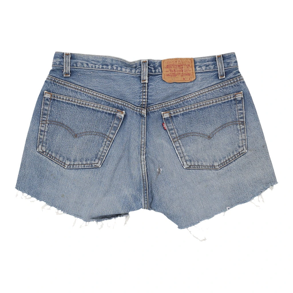 Vintage Levis blue shorts, fit a UK 14 – 34 inch / 86 cm waist.
