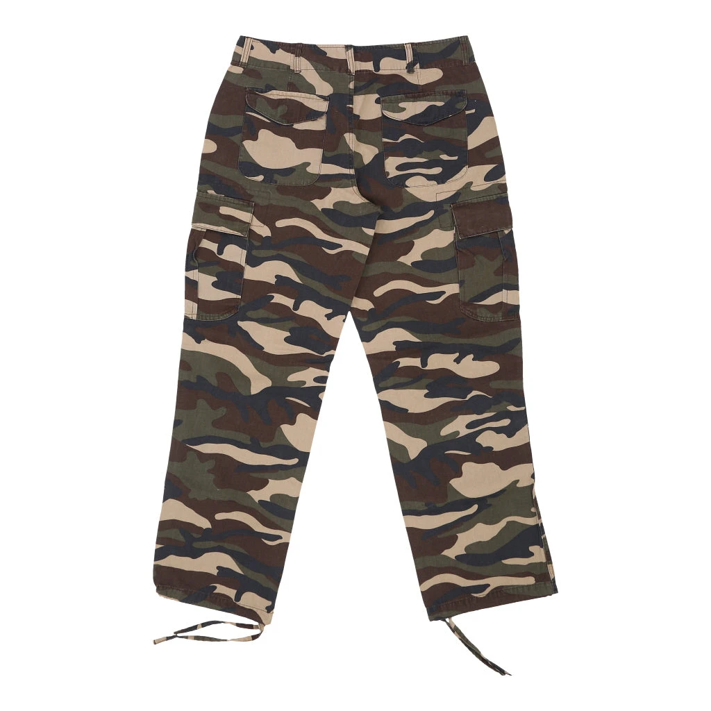 Vintage Reject camo trousers, fit a UK 14 – 34 inch / 86 cm waist.